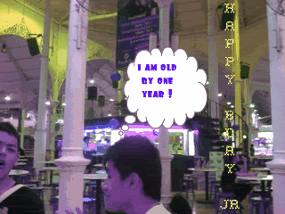 went to old market with peeps , reach the place around 9 + . order some food and started chatting ! the live band there was COOL! so we requested them for a b day song to j.r @ . they sang b day song to him fellow by no one ! thank platinum . !